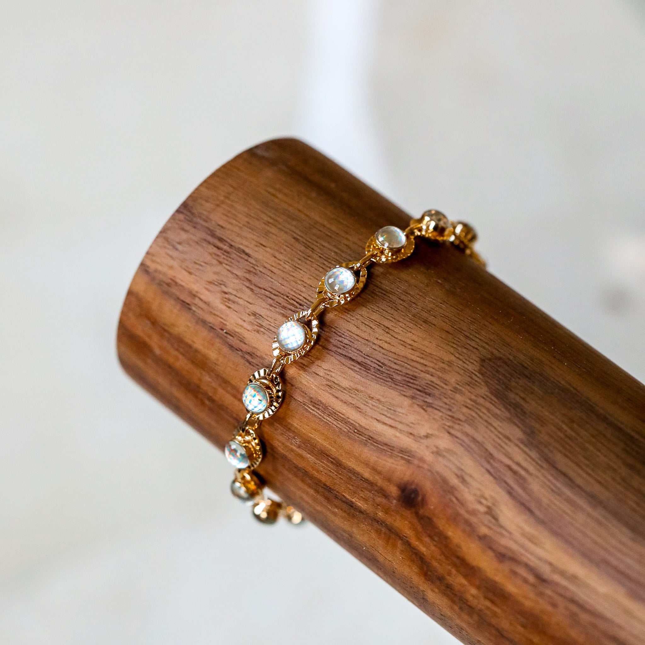 Glass Opal Chain Bracelet - Gold