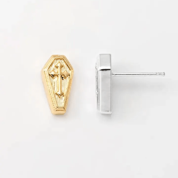 Your new favorite gothic accessory! A tiny pair of silver or gold coffin stud earrings. Pop them in and you're ready to take on the night.