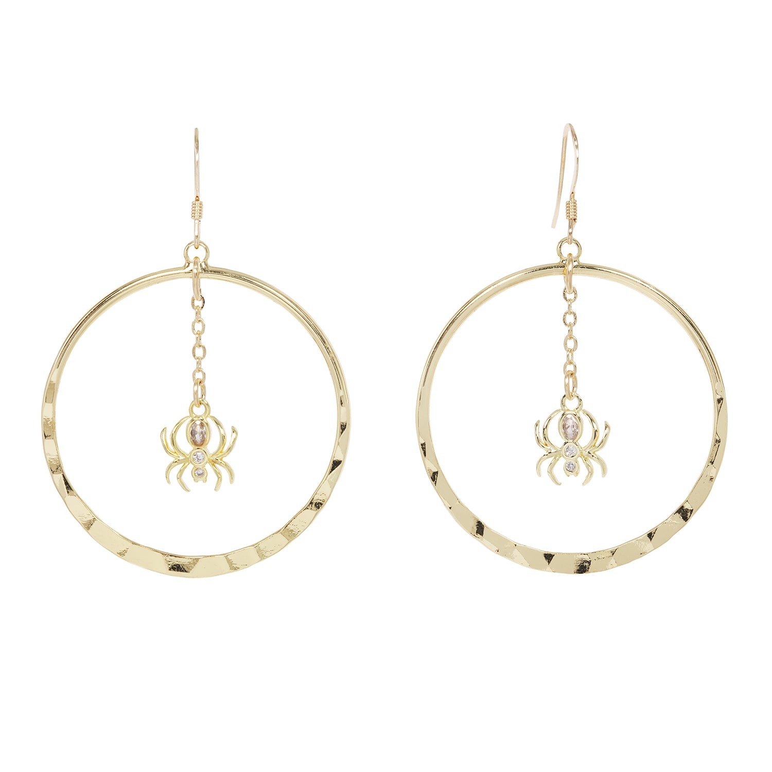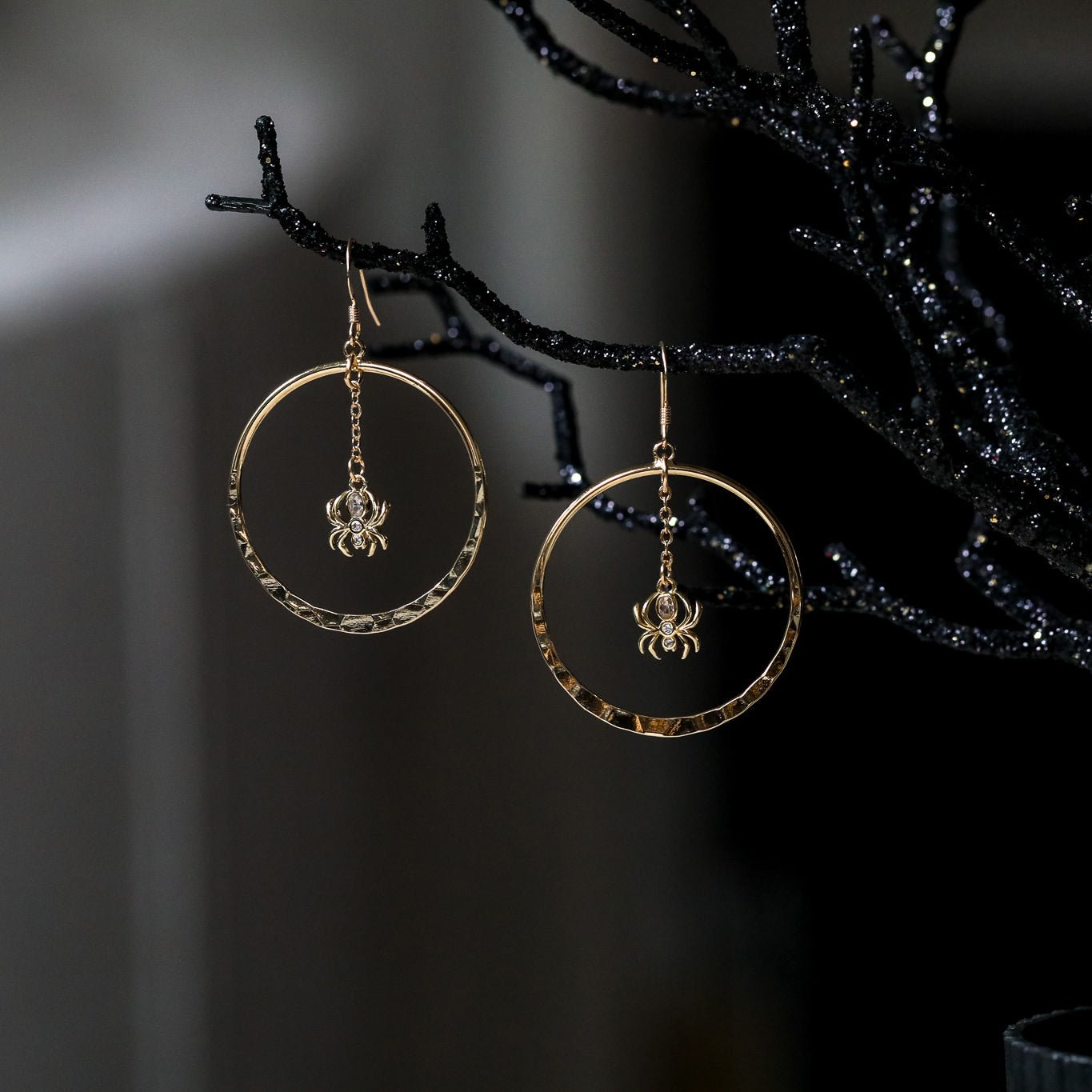 Take your Halloween jewels to the next level! A pair of hoops with dainty crystal-studded spiders dangling within. A beautiful take on spider jewelry 🕸🕷