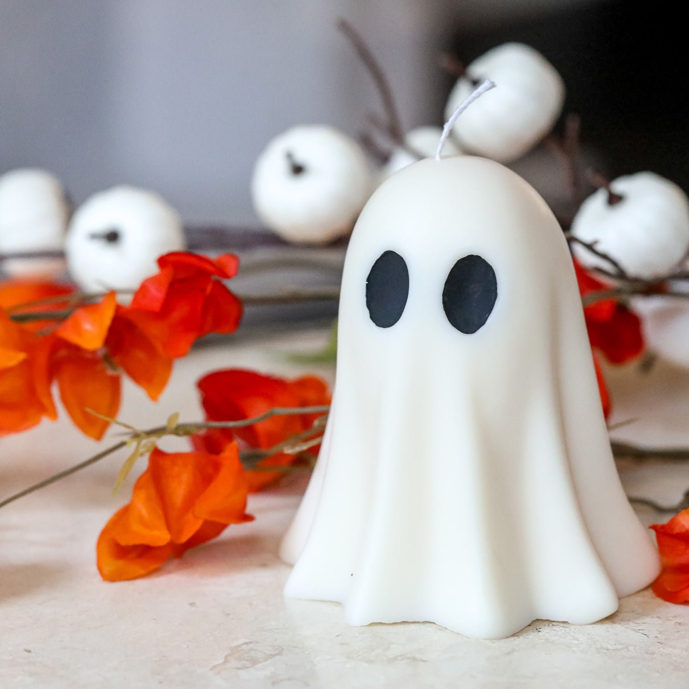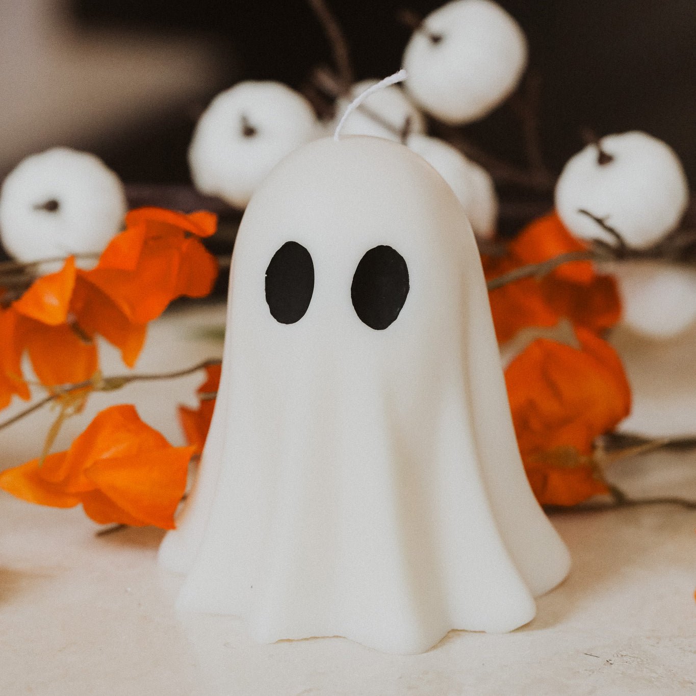 A fun, large ghost candle from A Pleasent Thought 👻 How cute is this for Halloween?? It's so perfect for autumn/fall decor, Halloween, or your everyday ghost enthusiast.
