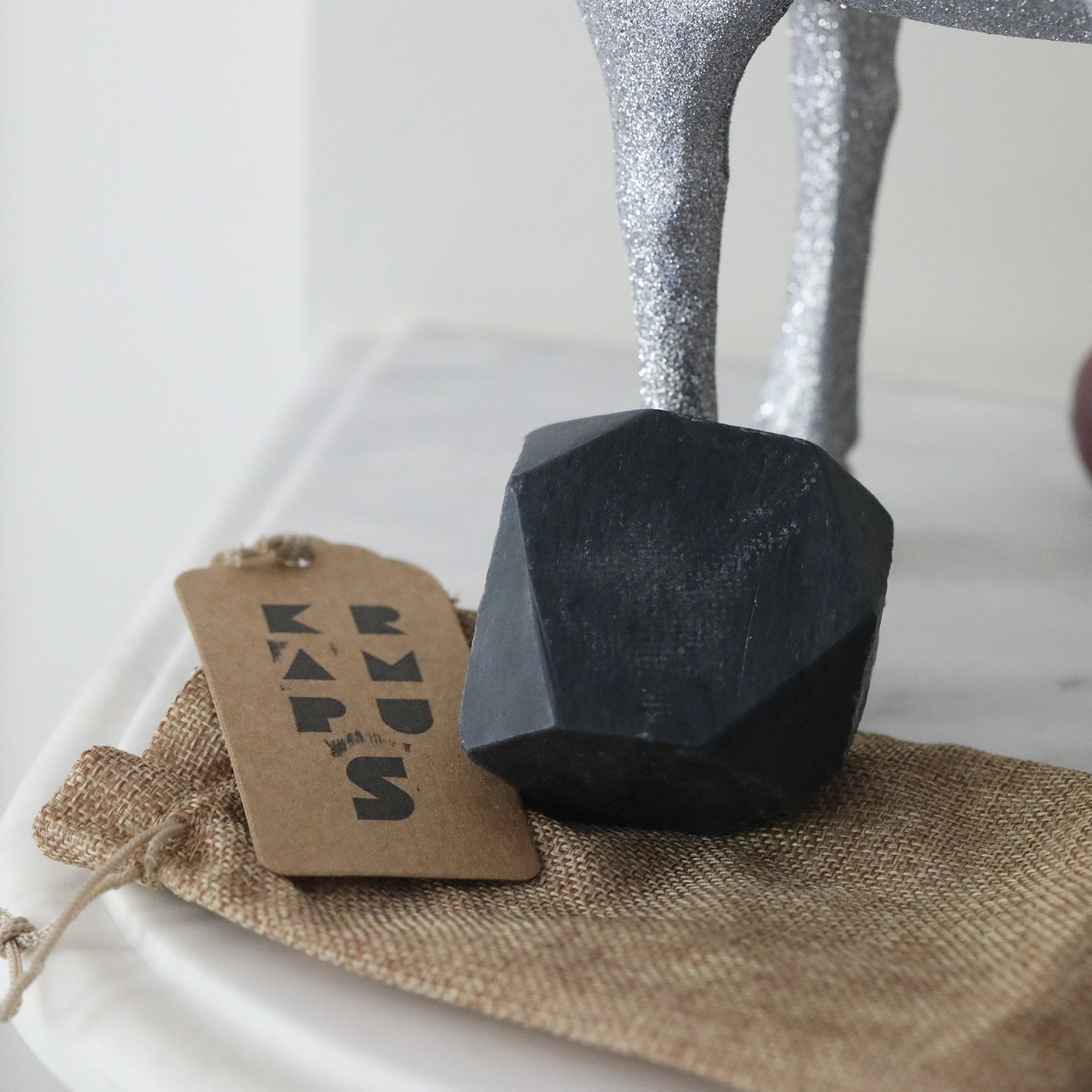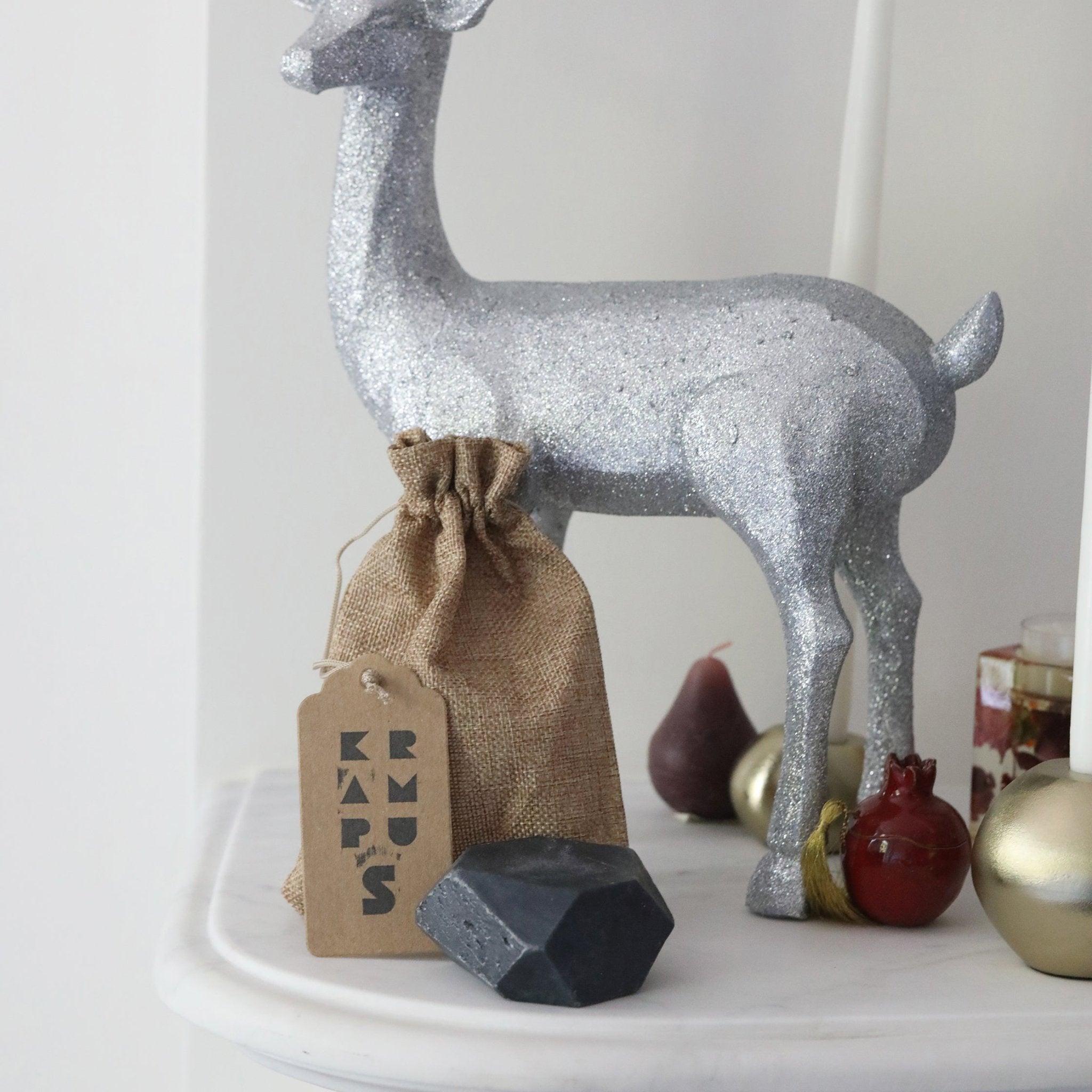 Look no further for a nostalgic, tounge-in-cheek Holiday stocking stuffer 🎄 Stockpile a few of these organic charcoal soaps that look exactly like a lump of coal delivered by the yin to Santa's yang, the one and only Krampus. Handcarved and poured by the Craft of Wandering. Comes in a soft burlap bag.